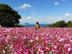 博多湾に浮かぶ能古島の自然公園「のこのしまアイランドパーク」では、例年10月から11月にかけて、約80万本のコスモスが見頃を迎えます。10月上旬から下旬には、志賀島を背景に約50万本のコスモスが、10月下旬から11月中旬には、玄界島を背景に約30万本の遅咲きのコスモスが、辺り一面を埋め尽くします。いずれのコスモスも、背景となる海と空とのコントラストが美しく、能古島ならではの秋の絶景を楽しめます。