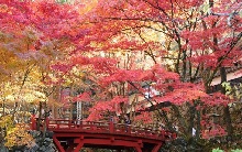 日本最古の観音霊場、西国巡礼第三十三番満願札所で、「谷汲さん」の名でも親しまれている華厳寺では、例年11月上旬になると、長い参道から境内までが美しい紅葉に彩られます。広い境内には、本堂のほかにも「笈摺堂」、「満願堂」、「精進落としの鯉」などの見どころがあります。約1kmにわたる門前町には、土産物屋や飲食店が立ち並び、大勢の観光客で賑わいます。