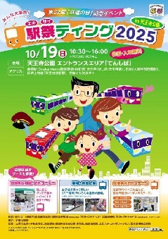 「鉄道の日」を記念し、近畿地区の鉄道各社が一堂に会する「駅祭ティング」が、天王寺公園エントランスエリア「てんしば」で開催されます。鉄道各社のグッズ販売や子ども向け乗物・遊具など、さまざまなイベント(一部有料)が催されます。※イベント内容などについては、変更となる場合があります。