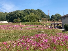 広尾東にある小麦収穫後の約2.5haの圃場に植えられたコスモスが、例年10月中旬になると見頃を迎えます。2025年は段々畑ではなく、全体を見渡すことのできる広々としたコスモス畑となっています。期間中の土日には、地元産の農作物の販売や、さつま芋の収穫体験などがあるほか、趣向を凝らしたフォトスポットも設置される予定です。
