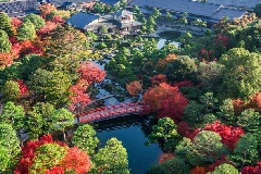 紅葉の盛りを迎えた由志園で、モミジをはじめとする樹木がライトアップされます。園内のカフェ「一望」からは、BGMに包まれながら、紅葉のライトアップが楽しめます。由志園は、回遊式日本庭園と牡丹が有名で、一年中ボタンの咲く園「牡丹の館」などの見どころもあります。