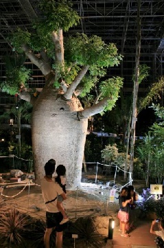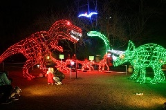 華麗に咲き誇るランやブーゲンビレア、ポインセチア、日本一のバオバブなどの植物のライトアップやイルミネーションにより、園内が華やかに彩られ、昼間とは違った幻想的な植物公園に様変わりします。LEDで再現された光り輝く恐竜の世界には、トリケラトプスやティラノサウルスなどの恐竜が登場します。展示温室のクリスマスムード満点の装飾も必見です。