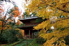 曹洞宗の古刹、東香山大乗寺(とうこうざんだいじょうじ)では、例年11月になると紅葉が見頃を迎えます。境内にはモミジなどが植えられており、どっしりとした構えの山門と、モミジとのコントラストは風情があります。静けさの中、ゆっくりと参拝することができます。