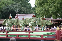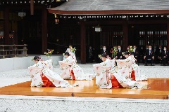 御祭神、明治天皇の御生誕日にあたる11月3日を中心に、明治神宮で「秋の大祭」が行われます。11月1日は鎮座記念祭、2日は第二日の儀、3日は、明治神宮で最も重要な祭儀とされる例祭(勅使参向)が執り行われます。11月1日から3日までの期間は、能・狂言、舞楽のほか、三曲、邦楽邦舞、薩摩琵琶、流鏑馬など、さまざまな奉祝行事が境内各所で奉納されます。さわやかな秋の休日に、伝統文化が堪能できる貴重な機会となっています。