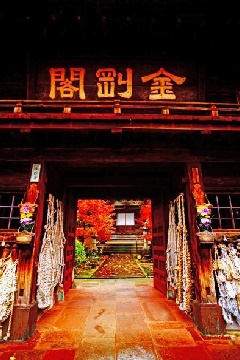卯辰山山麓寺院群の一つ、全性寺では、例年11月下旬に紅葉が見頃を迎えます。境内に植えられたモミジやイチョウが紅葉(黄葉)し、秋ならではの風情を感じることができます。どっしりと構える山門は金沢市指定有形文化財で、内部に仁王像が配され、大小多数のわらじが奉納されています。