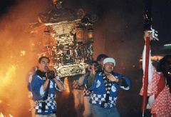 黒部市生地地区にある新治神社の奇祭「生地たいまつ祭り」が行われます。嵐のために方向のわからなくなった漁船が、御神火の明かりにより助かったという伝説に由来するお祭りです。大小約400本のたいまつの炎と煙が、神社の境内を包み込む中、「オタッチョー」(神様がお立ちになる)のかけ声とともに、男達が神輿を担ぎ、燃えさかるたいまつの上を一気に駆け抜けます。