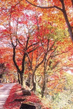 瀧廉太郎の名曲「荒城の月」のモチーフとなったことで知られる岡城跡では、例年11月中旬から下旬にかけて、モミジなどが紅葉のピークを迎えます。現存する城の石垣と、色鮮やかに染まる木々との風情ある景観が見どころです。かつて城下町として栄え、武家屋敷や古刹などが点在する市街地では、情緒ある町並みを散策しながら紅葉狩りが楽しめます。