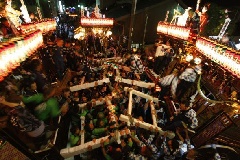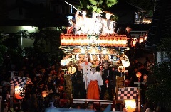 晩秋の森町を彩る、遠州地方最後の秋祭りが、三島神社周辺で開催されます。14台の豪華な屋台が引き回され、激しい練りが行われます。2日目の「神輿渡御」と3日目の「還御」には全屋台が集まり、三島神社と金守神社の間を往復します。まつりのクライマックスとされる「舞児還し」では、3日間、三島神社に仕えた舞児を、神社本堂から各社の屋台正面に乗せ、各自宅に送り届けます。