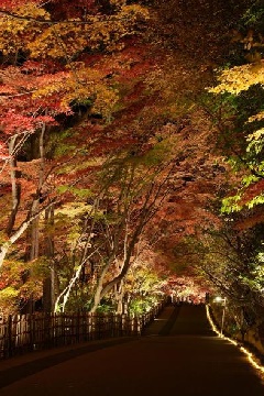 自然豊かな東山動植物園は、イロハモミジ、ハウチワカエデ、ヒトツバカエデ、メグスリノキなど、モミジの仲間をはじめ、紅葉する樹木が500本以上もある名古屋市内でも有数の紅葉の名所です。也有園から合掌造りの家、日本庭園に連なる約300本の紅葉は市内屈指の眺めで、樹木により色づきの進みに違いがあり、赤、橙、黄色、黄緑、緑の五色もみじが圧巻です。植物園エリアの一部が20:30まで(最終入園20:00)開園延長される「紅葉ライトアップ」では、夜に浮かび上がる紅葉の幻想的な景色を楽しむことができます。※詳細はホームページ参照