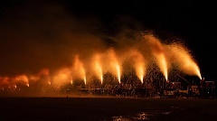 愛知県東三河地域に伝わる手筒花火は、火薬を詰めた竹筒を抱え、火の粉を体に浴びながら放揚する勇壮な花火です。約10mにもなる炎の柱は壮大なスケールで、観る者をを圧倒します。手筒花火を中心に、大筒や網火、仕掛花火、打上花火などが披露されます。