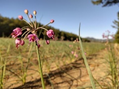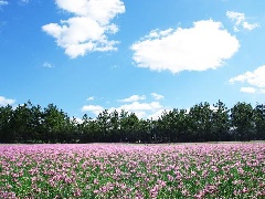 入野海岸沿い4kmにわたるらっきょう畑の花が、例年11月に満開となり見頃を迎えます。らっきょうは夏に植え付けられ、春に収穫されるため、秋に一斉に花が咲きます。紫色の小さな花火のような花が辺り一面に咲き揃い、紫の絨毯をしきつめたような光景が広がります。