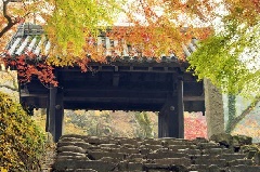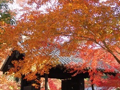 元和9年(1623年)に黒田長政の遺命により秋月藩が成立し、三男長興が居城とした秋月城では、例年11月下旬から12月上旬にかけて、今も残る石垣や黒門、長屋門と紅葉とが見事な風景を創ります。特に黒門周辺ではカエデが鮮やかに色づき、赤と黒の美しいコントラストを織り成します。紅葉の名所として全国的に有名で、ピーク時には観光客が紅葉狩りに訪れます。