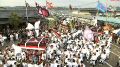 学問の神、菅原道真公を祀る尾末神社の大祭は、大漁や漁の安全を祈願する祭りで、250年以上の歴史があります。上納屋(かみなや)、下納屋(しもなや)、尾末(おずえ)の3地区から「だんじり」(町指定無形民俗文化財)と呼ばれる太鼓台が繰り出します。ハイライトは海の男たちが少年たちを神輿に乗せて町を練り歩く「だんじり」で、海辺の祭りにふさわしく激しく勇壮な光景が楽しめます。