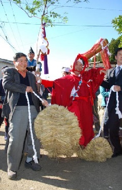 約800年前から伝わる「ひょうたん祭り」が、柴山八幡社で行われます。例年、大きなひょうたんを腰に吊るし、長さ1.3m、重さ10kgという大わらじを履いた「ひょうたん様」が、五穀豊穣、無病息災を唱え、お神酒をふるまいながら参道を練り歩きます。行列のほか獅子舞、神楽、流鏑馬なども行われます。