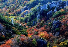 瀬戸内海国立公園を代表する名勝地で、日本三大渓谷美の一つとされる寒霞渓では、山全体が燃えるかのように染まり、色鮮やかな紅葉を見ることができます。特にロープウェイからの景観は圧巻で、岩肌を包むような赤やオレンジ、黄色のじゅうたんが眼下に広がり、錦秋の壮大な風景を楽しめます。11月3日には、寒霞渓もみじ茶会が催される予定です。