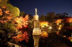紅葉の名所として知られる知恩院で、東山の湧水を引入れた庭と枯山水の庭で構成された名園「友禅苑」をはじめ、除夜の鐘で有名な大鐘楼、日本最大級の木造二重門である「三門」などがライトアップされます。広々とした境内には、さまざまな文化財が建ち並び、美しい紅葉とともにゆっくりと拝観できます。