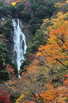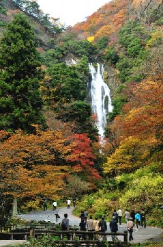 「日本の滝100選」に選ばれている神庭の滝では、例年11月にケヤキやモミジなどの瑞々しい紅葉を見ることができます。滝周辺は、神庭の滝自然公園として遊歩道などが整備され、落差110m、幅20mもの豊かな水量によりマイナスイオンいっぱいの紅葉狩りが楽しめます。