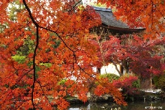 日本最古の鐘楼門など、国指定重要文化財の建物が点在する長岳寺では、例年11月になると紅葉が見頃を迎えます。境内の建造物と見事に調和した美しい紅葉は、「日本紅葉の名所100選」にも選ばれています。1万2000坪の境内には、平戸つつじをはじめさまざまな花が植えられ、四季折々に違った顔を見せます。10月23日から11月30日は、「大地獄絵開帳」も行われます。