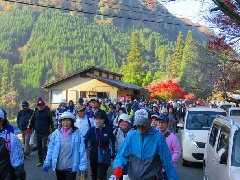 紅葉で鮮やかに彩られた折戸渓谷を歩き、錦もみじと奇岩秀峰を満喫できるコースです。地元の人々による手料理がふるまわれるほか、ゴール後は、折戸温泉で身体も心もリフレッシュできます。