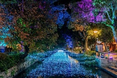 岡山市中心部に位置する水と緑の豊かな西川緑道公園で、「西川イルミ」が開催されます。2025年は、水辺に輝く色とりどりのイルミネーションや、高さ4mのクリスマスツリーが登場し、光きらめく星月夜の世界を演出します。