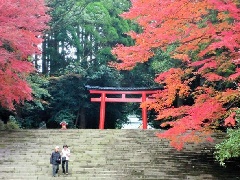 壮麗な朱塗の本殿などが国宝および重要文化財に指定されている霧島神宮では、例年11月中旬になると周辺の木々が色づき始めます。紅葉の名所としても知られ、ピークを迎えた紅葉と朱い鳥居とのコントラストは見応えがあります。霧島神宮周辺には七不思議伝説が残っており、紅葉散策とともに古の歴史などが楽しめます。