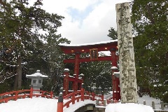 「けひさん」の愛称で親しまれる氣比神宮は、無病息災、五穀豊穣、海上安全、大漁祈願のご利益で知られ、正月三が日には福井県内や関西地方などから、約10万人の初詣参拝者が訪れます。高さ11mの大鳥居は、木造のものとしては、春日大社、厳島神社などと並ぶ日本3大木造鳥居のひとつで、重要文化財に指定されています。