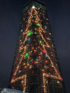 高さ地上125mの千葉ポートタワーのハーフミラーガラスの内側に、約3500個のカラフルな電球やソフトネオンで装飾が施され、南側と東側の壁面の中空部(100m×30m)にクリスマスツリーが登場します。冬の夜空に浮かび上がる巨大なツリーは見応え充分です。期間中は、さまざまなイベントも開催されます。