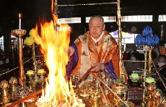 犬山成田山の名で親しまれている成田山新勝寺の別院、大聖寺へは、正月三が日に大勢の初詣参拝者が訪れます。新春元朝特別大護摩供が厳修され、御本尊の不動明王を前に護摩木を焚いて、新年にあたり諸願の成就を祈ります。