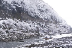 亀岡から嵐山まで約16kmの渓谷を、2時間で下るスリル溢れる豪快な川下りです。保津川沿いの山々の雪景色など、冬場ならではの風景を眺めながらゆったりと楽しめます。