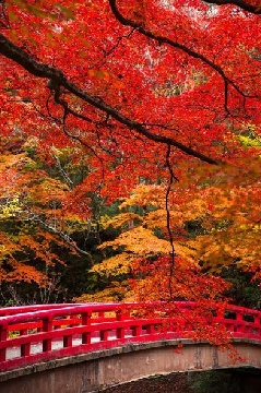 自然あふれる瀬戸の奥座敷、岩屋堂公園は例年11月中旬になると、カエデが美しく紅葉し始めます。行基に由来する天然石の祠「岩屋堂」や、暁明ヶ滝、瀬戸大滝など、清流の流れる鳥原川沿いを紅葉が美しく染め上げます。