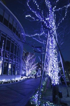 徳島文理大学徳島キャンパス内の街路樹が、約35万球の青と白を基調とした発光ダイオードの光で彩られ、幻想的な雰囲気に包まれます。今回で第20回の開催となり、徳島キャンパスの冬の風物詩となっています。初日の点灯式では、音楽学部の学生たちによるコンサート、沖縄県人会によるエイサーやダンス部によるパフォーマンスが行われる予定です。