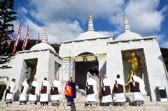 最上稲荷では、今年一年の感謝と、来る年に備え魔障を払う「終年感謝祭」が本殿で執り行われます。その後、諸堂宇を清めながら、僧侶が巡拝します。