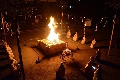 報恩大師が孝謙・桓武両帝の病気平癒を祈願したところ、お札が香の煙とともに消えたという故事にもとづき、「お火たき大祭」が開催されます。最上稲荷特有の伝承行事で、三大祭典の一つです。一年間お祀りされたお札を、境内の特設の護摩壇で感謝を込めておたきあげし、おたきあげの炎にあたると、一年を無病息災で過ごせるとの言い伝えがあります。