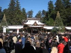 多賀大社では新年を祝い、元日に一年間の守護を祈る「歳旦祭」が執り行われます。3日は「翁始式」があり、大蔵流茂山社中による「翁」が奉納されます。期間中は、新年の隆盛を祈る初詣参拝客で賑わいます。