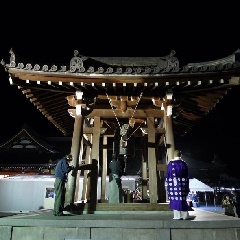 真言宗の名刹、弘法大師空海ゆかりの善通寺では、除夜の鐘は、弘法大師に縁のある家筋の手によりつかれます。煩悩を払う108回の鐘の音が、境内に厳かに響き渡ります。善通寺は、四国霊場八十八カ所の第七十五番札所にあたります。