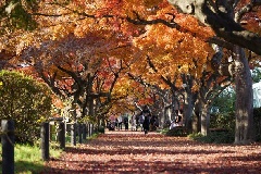 日本でもっとも古い植物園で知られる東京大学大学院理学系研究科附属植物園(小石川植物園)で、紅葉の時季を迎えたイチョウ、メタセコイヤ、イロハモミジ並木などが美しい風景を創ります。16万1588平方m(4万8880坪)の敷地は、台地、傾斜地、低地、泉水地など、変化に富んだ地形で、それらを利用したさまざまな植物が配置されています。