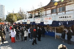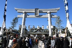 大晦日17時から大祓式と除夜祭、23時15分から樽酒奉納奉告祭が行われた後、元旦0時から初神楽奉奏(巫女舞)が行われ、新年の幕開けを祝います。1日は歳旦祭と吟詠奉納、2日は二日祭と尺八奉納、3日は元始祭と射礼、謡曲奉納が斎行されます。正月三が日は、約60万人の参拝者が訪れ、御神酒の振る舞いもあり、境内は大いに賑わいます。※参拝の際には、ホームページ「初詣情報」をご確認ください。