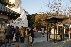 高さ25.39m、重量1915tもある白衣観音が有名な大船観音寺へは、元日から開運、子宝、商売繁盛、健康祈願などのご利益を求めて、大勢の参拝者が初詣に訪れます。境内には露店が立ち並び、新年を祝う賑やかな雰囲気に包まれます。