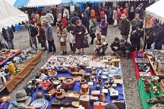 「弘法さん」と呼ばれる、宗祖弘法大師御入定にちなんだ毎月21日の縁日の中でも、一年で最初となる1月21日は、「初弘法」として親しまれています。東寺の境内一帯に、骨董品をはじめ、特産品や植木(園芸)、陶器などを扱う約1000余りの露店が軒を並べ、多くの観光客が訪れます。