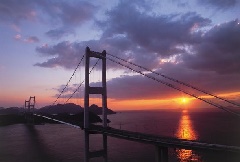 瀬戸内海国立公園のなかでも有数の多島美を誇る来島海峡で、初日の出を拝むことができます。来島海峡展望館前からは、来島海峡大橋の人工美と多島海景の自然美が一望できます。来島海峡大橋は、徒歩や自転車でも渡ることができます。※来島海峡大橋自転車歩行者道入口まで/JR予讃線「今治駅」からバス約22分「展望台入口」~徒歩10分