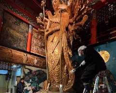 小松市の那谷寺で、金堂の十一面千手観音像の1年の汚れを落とし清める「お身ぬぐい」が行われます。午後1時30分頃から僧侶らにより、高さ7~8mある観音様のほこりやすすが払われます。この日から数日の間に、鏡餅を各お堂に供えたり、正月花を立てたりするなど、正月を迎える準備が整えられていきます。