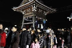 日蓮宗の圓乗寺では、大晦日の23時50分から除夜の鐘つきが始まります。戦災で残ったという鐘楼堂で、一般の人も鐘をつくことができます。回数に制限はなく、108回以上でもつくことができます。圓乗寺には三面大黒天がお祀りされており、家内安全、商売繁盛、厄除けのご利益で知られています。