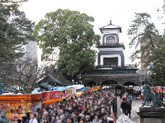 金沢市の総社的神社として市民に親しまれている尾山神社へは、新年を祝い、諸願成就を願って大勢の人々が初詣に訪れます。加賀藩祖、前田利家公と、その正室のお松の方をお祀りし、和漢洋の三様式を取り込んだ端正な美しさの神門は、国の重要文化財に指定されています。