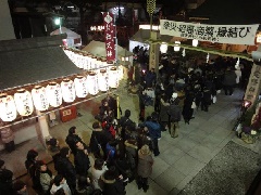 劇作家の近松門左衛門が発表した「曽根崎心中」の舞台とされる露天神社(お初天神)は、縁結び、厄除開運、商売繁盛などのご利益で知られ、正月三が日には約2万人の参拝者が初詣に訪れます。元旦0時から4時まで御神酒のふるまいがあるほか、11時から歳旦祭が斎行されます。