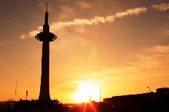海のない京都の街を照らす灯台をイメージした高さ131mのニデック京都タワーへは、展望室から初日の出を見ようと、元旦に多くの人が訪れます。JR京都駅の烏丸口(北側)に位置し、日の出とともに地上100mの展望室から京都の街を一望できます。※天候の状況により、初日の出が見物できない場合があります。