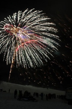 ハチ高原の正月を彩る、恒例の新春花火大会が開催されます。轟音とともに、次から次へと打ち上げられる幻想的な花火が、白銀のゲレンデを鮮やかに彩ります。ハチ高原スキー場には、初心者から上級者まで楽しめるコースがあり、頂上でつながるハチ北とはリフト券が共通のため、日中は、思う存分スキーも満喫できます。