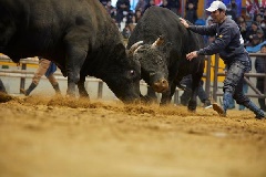 宇和島定期闘牛大会の正月場所が、市営闘牛場で開催されます。1t級の牛と牛が闘う真剣勝負は、迫力満点です。荒々しい牛の息づかいや、甲高い勢子(せこ)の声、角と角がぶつかり合う音が館内に響き、白熱の戦いが繰り広げられます。
