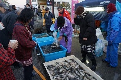 二十日正月(はつかしょうがつ=正月の終りとする日)に供える郷土料理「ふなんこぐい」用の鮒(ふな)を売る市です。300年以上続く伝統行事で、朝早くから大勢の買い物客が集まります。
