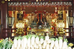 正月恒例行事「大般若講・大根まつり」が待乳山聖天で開催されます。午前11時から、家内安全、商売繁盛を祈願する大般若法要が行われた後、正月三が日に奉納された大根で作ったふろふき大根が参拝者にふるまわれ、一年間の無病息災を祈ります。
