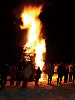 戸隠の冬の伝統行事「どんど焼き」が、戸隠スキー場中社ゲレンデで開催されます。松明行列やどんど焼き神事、戸隠太鼓のほか、雪上大花火の打ち上げが行われ、白銀のゲレンデが美しく彩られます。事前に申し込みをすれば、メッセージを込めた「お祝い花火」として、花火を打ち上げることもできます。樽酒、甘酒、厄除け餅、紅白餅のふるまいもあります。